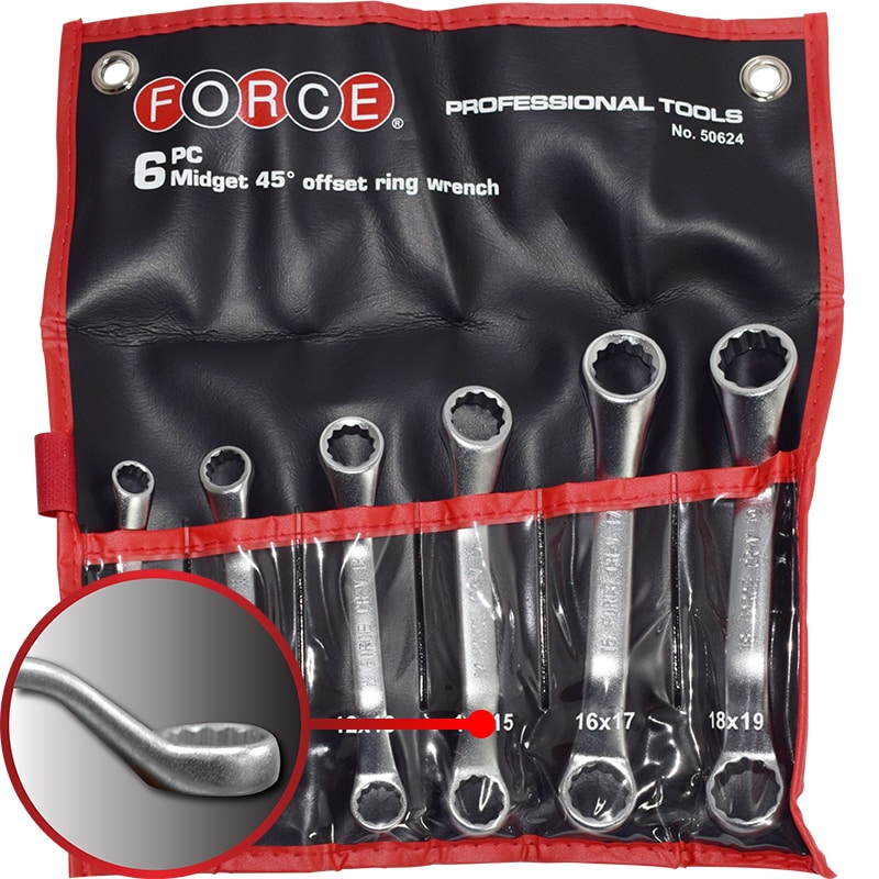 6 x 45° Midget Offset Ring Wrench: 8×9 10×11 12×13 14×15 16×17 18×19